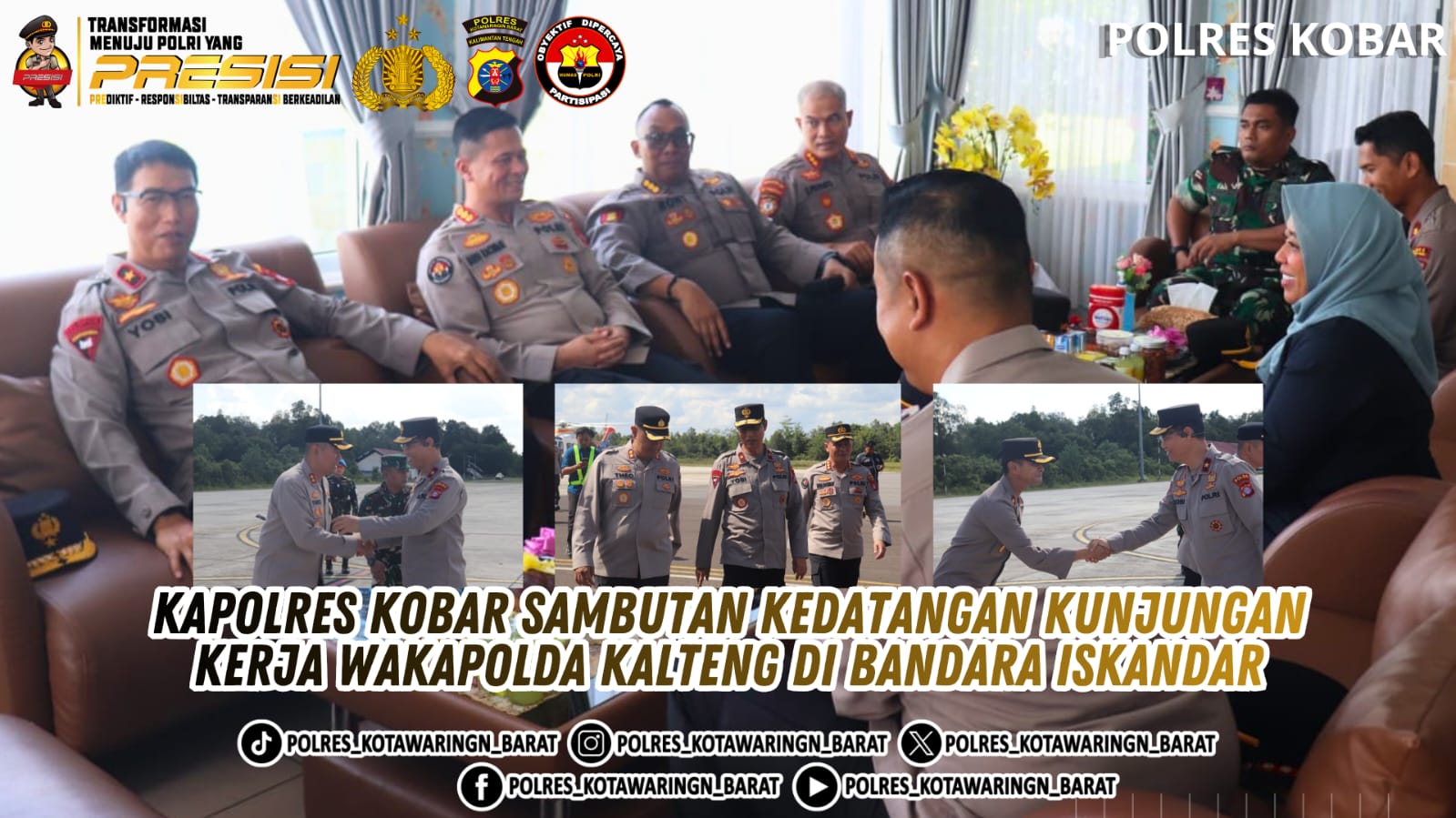 Polres Kobar – Kapolres Kotawaringin Barat (Kobar) bersama Wakapolres dan jajaran Pejabat Utama (PJU) menyambut langsung kedatangan Wakapolda Kalteng Brigjen Pol Drs. Yosi Muhamartha di Bandara Iskandar Pangkalan Bun, Selasa (28/4/2026) sore.